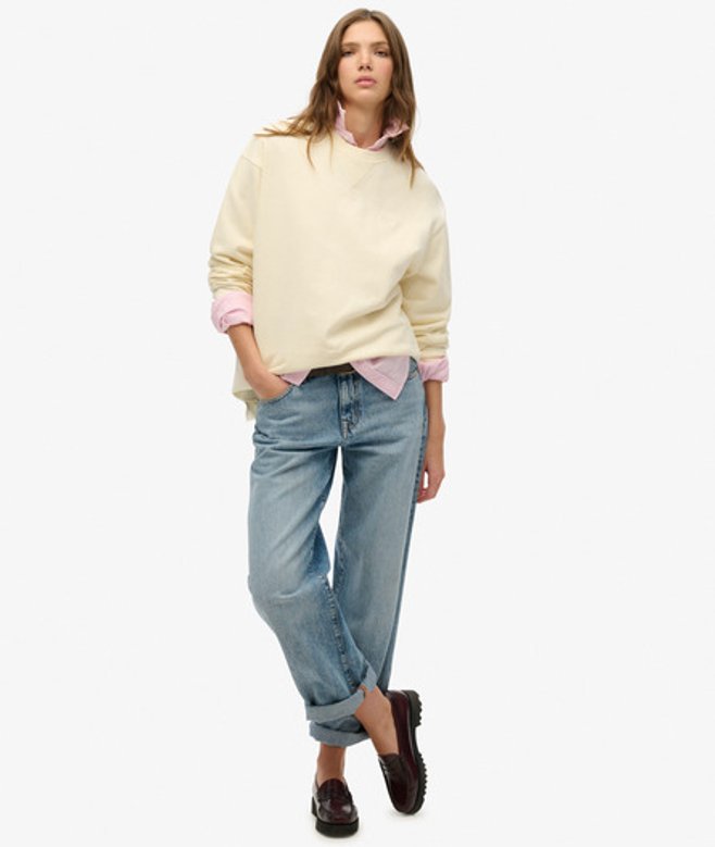 Ruimvallende pasvorm - los en flexibel voor wanneer je beweegruimte nodig hebt Ronde halslijn, geribde manchetten en een onafgewerkte zoom Gedetailleerde stiksels op de halslijn Kenmerkend label aan de achterkant van de halslijn en een subtiele, geborduurde tekst op de borst Ons Studios-sweatshirt met ronde hals is trendy en toch heerlijk warm.