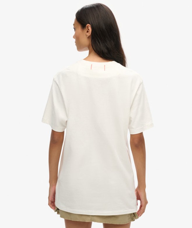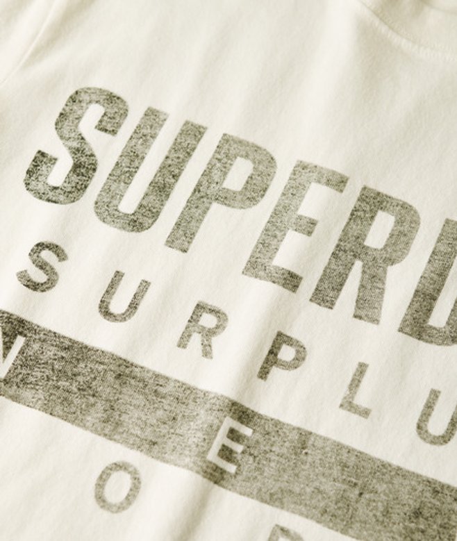 L-maten: VK 6-8, EU 34-36, VS 2-4 XL-maten: VK 10-12, EU 38-40, VS 6-8 XXL-maten: VK 14-16, EU 42-44, VS 10-12 Geribde, ronde halslijn en korte mouwen Print op de borst Kenmerkend label op de boord Het Surplus-T-shirt met print ademt vintage vibes.
