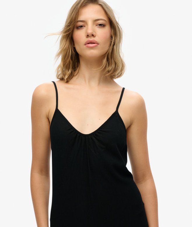 De verstelbare bandjes en elastische uitsnijding aan de achterkant zorgen voor de juiste pasvorm zonder beperking, precies zoals een zomerjurkje hoort te zijn.
