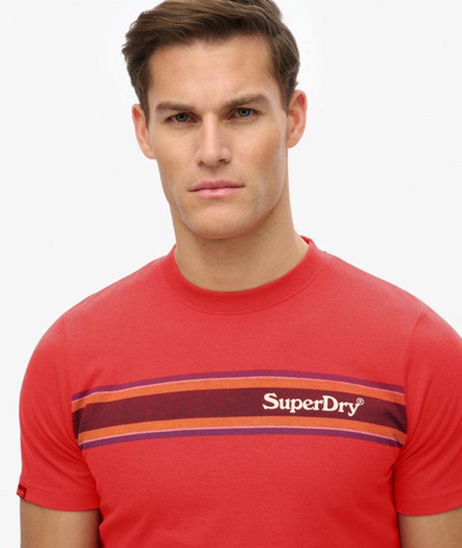 Superdry Gestreept T-shirt met Venue-logo en Relaxte Pasvorm Rood