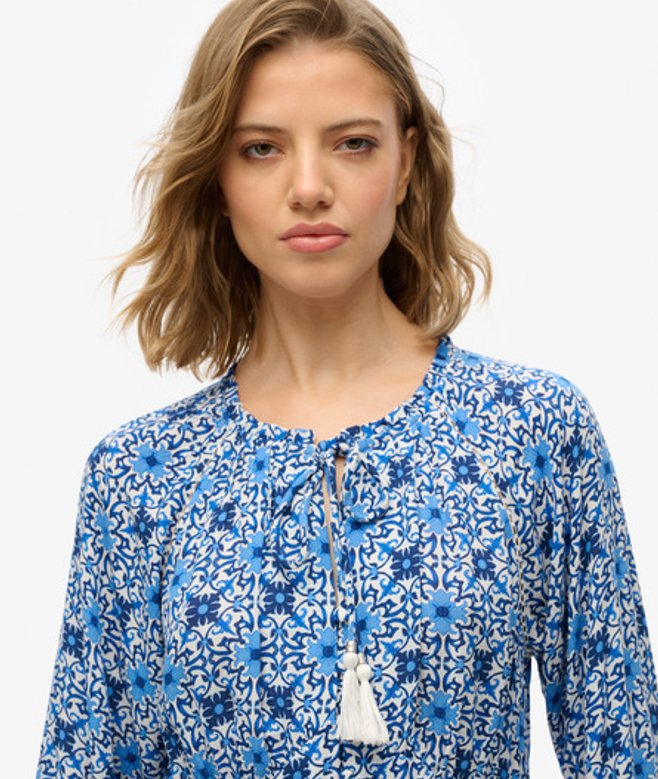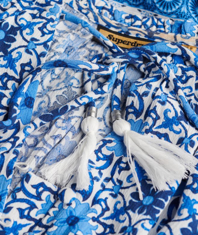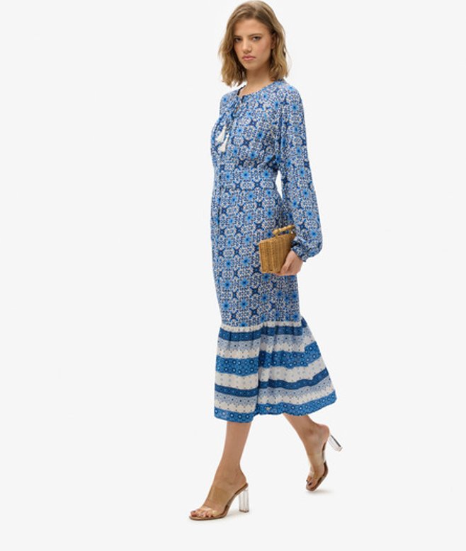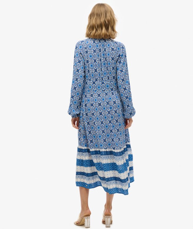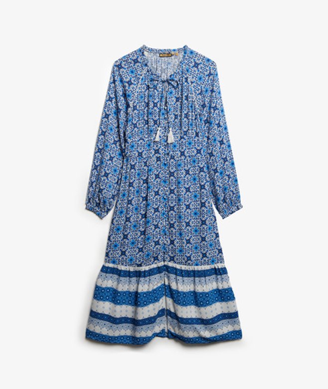 De Midi-jurk met print en lange mouwen is een prachtige optie met een mooi zomers patroon, ideaal voor elk plan dit seizoen, en supergemakkelijk te stylen om echt te pronken op de kenmerkende Superdry-manier.