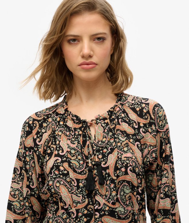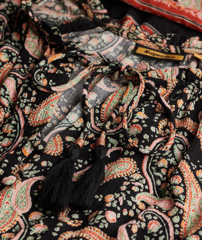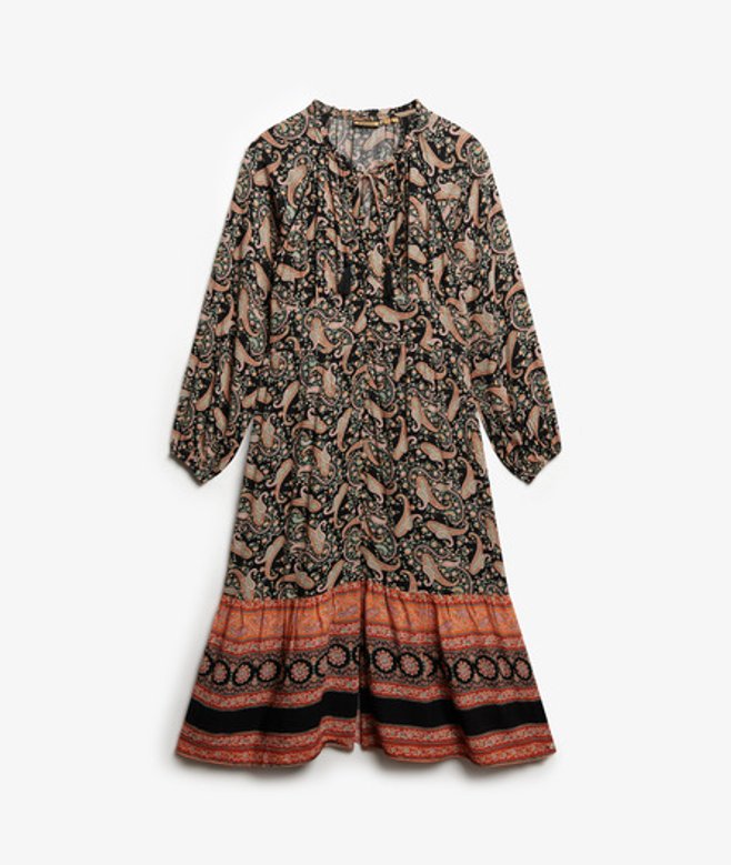 De Midi-jurk met print en lange mouwen is een prachtige optie met een mooi zomers patroon, ideaal voor elk plan dit seizoen, en supergemakkelijk te stylen om echt te pronken op de kenmerkende Superdry-manier.