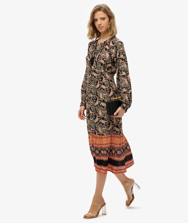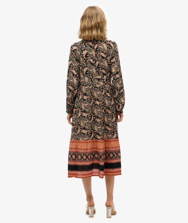 Superdry Midi-jurk met Lange Mouwen en Print Black