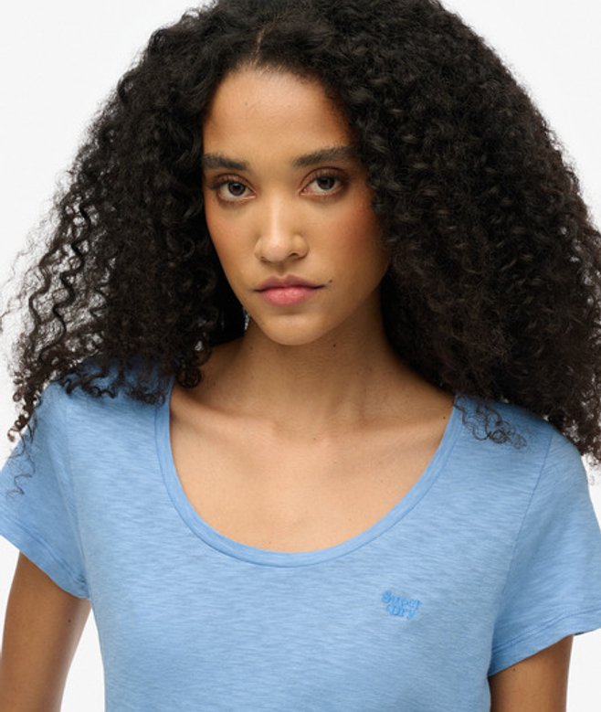Slimfit - de nauwsluitende pasvorm zorgt voor een meer geklede look Laag uitgesneden ronde hals Korte mouwen Naad aan de achterkant Geborduurd Superdry-logo