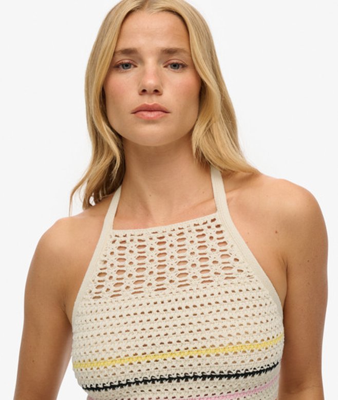 Superdry Kort Gehaakt Haltertopje Crème | ricciano NEDERLAND