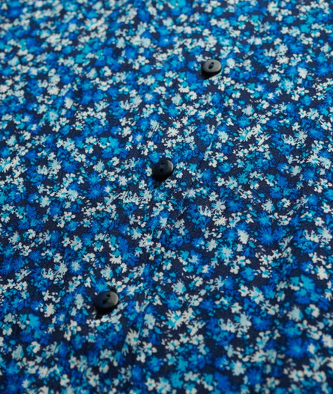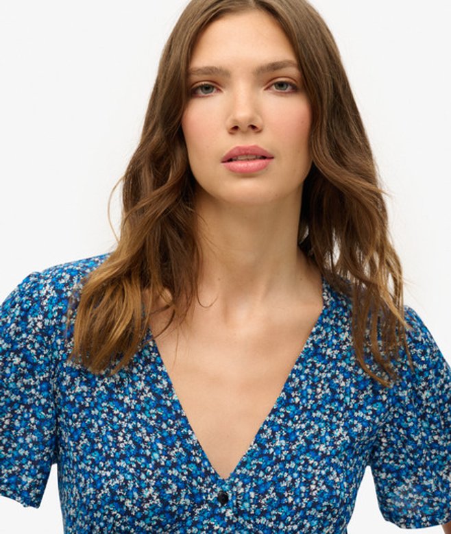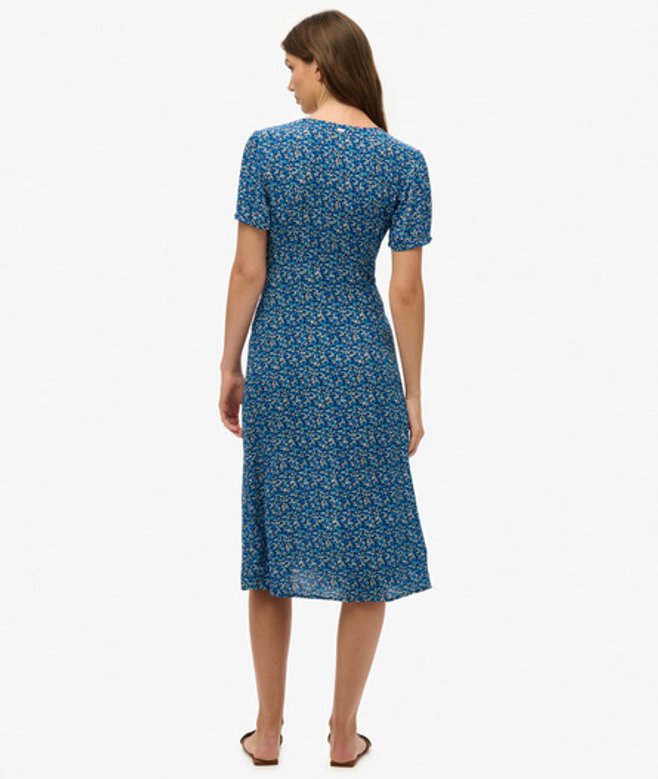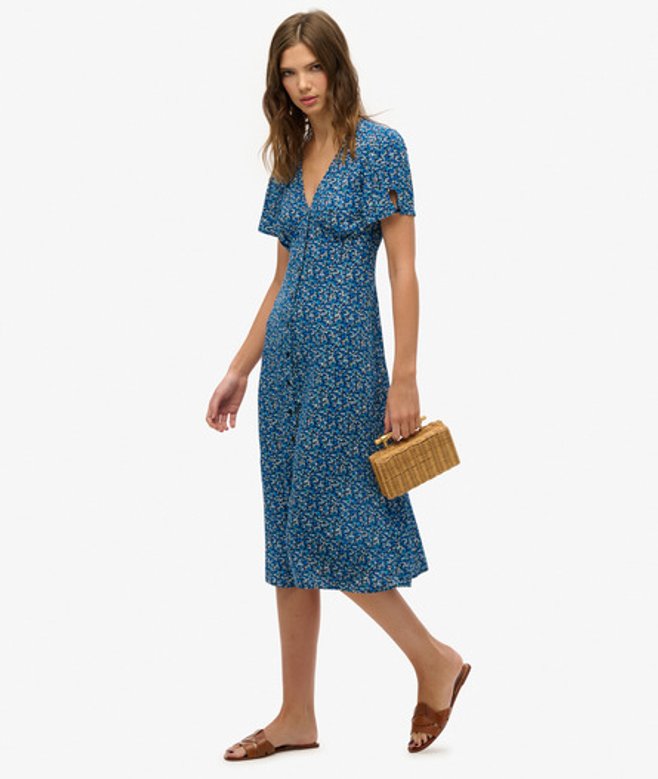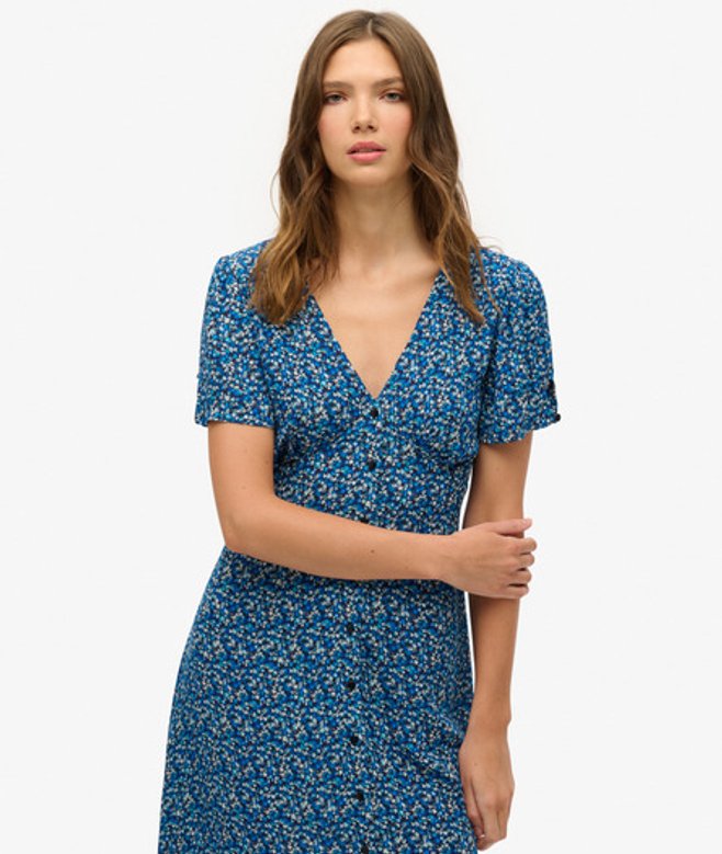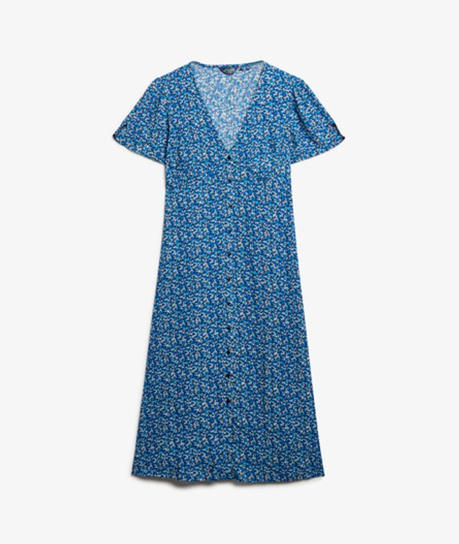 Superdry Bedrukte Midi-teadress met Knopen en Korte Mouwen Blue