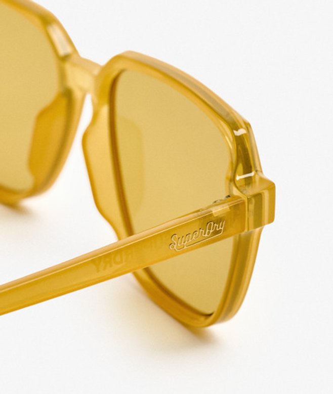 Lasergegraveerd logo op glas Pootjes met merklogo Opbergzakje met trekkoord Geschenkdoos Deze must-have is een op de diepe jaren 70 geïnspireerd accessoire met geometrisch facetgeslepen randen en is afgewerkt met een vleugje kleur.