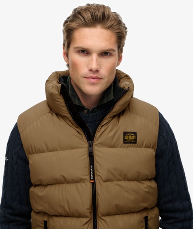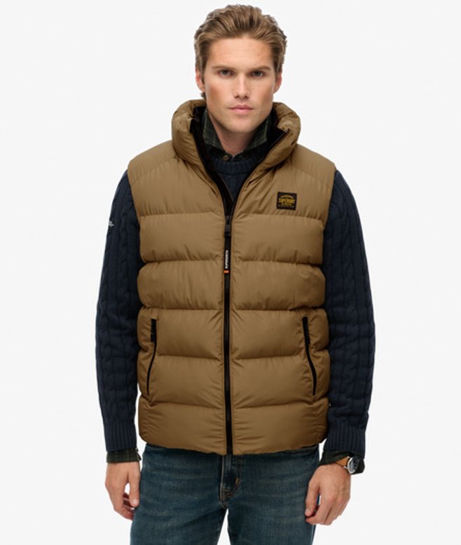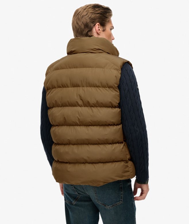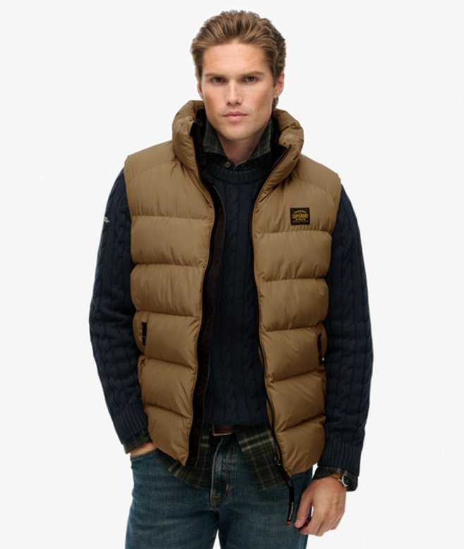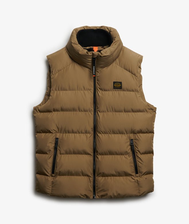 Kies je gebruikelijke maat Hoge kraag met een tweede geribde voering en ritssluiting Licht geborstelde binnenvoering en een verstelbare zoom met elastisch koord Twee buitenzakken met ritssluiting en een binnenzak van mesh Kenmerkend label op de borst Onze Sports-pufferbodywarmer is het perfecte kledinglaagje voor het komende seizoen.