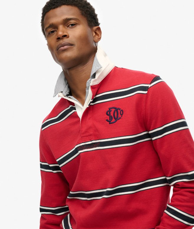 Kies je gebruikelijke maat Rugbykraag met drie knopen Lange mouwen Geribde manchetten Zijboord met split Geborduurd Superdry-logo Kenmerkend Superdry-label op de mouwboord We hebben het klassieke rugbysilhouet genomen en er een opvallend shirt van gemaakt om je authentieke, casual look compleet te maken.