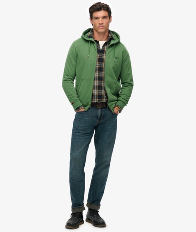 Superdry Essential Logo Half Brushed Zip Hoodie Green