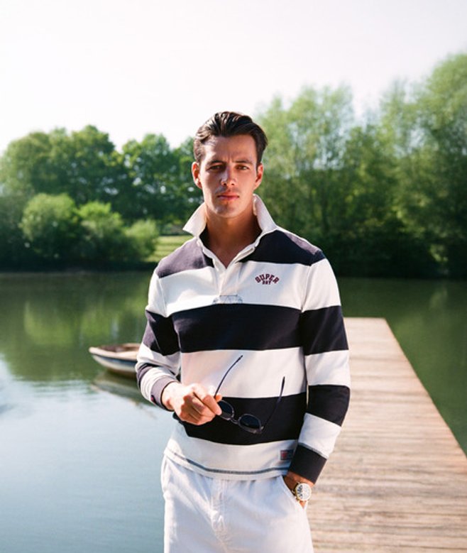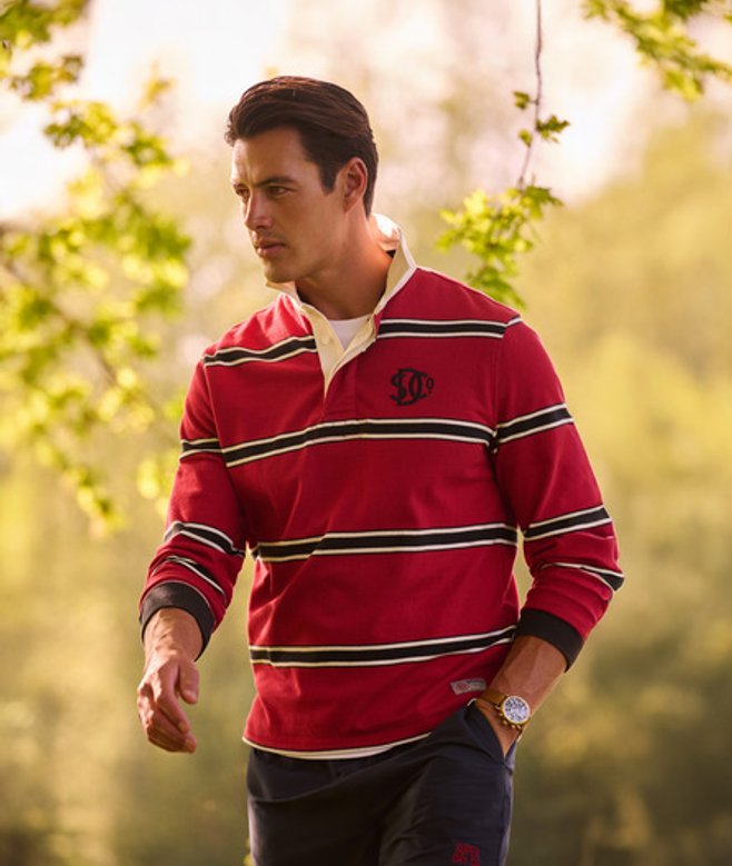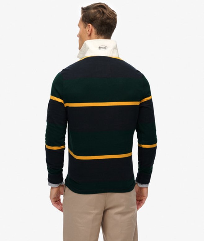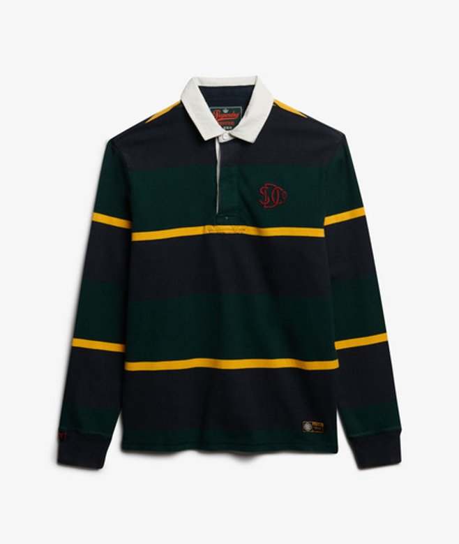 Het gestreepte Vintage Athletic-rugbyshirt is een vintage icoon dat teruggrijpt op de klassieke rugbylook.