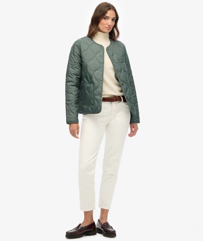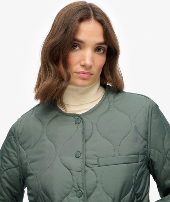 Ruimvallende pasvorm - los en flexibel voor wanneer je beweegruimte nodig hebt Drukknoopsluiting en drie buitenzakken Overal licht gewatteerd en met een kenmerkend lipje op de zak De gewatteerde Lite-jas met voering is een verfijnde optie voor de herfst.