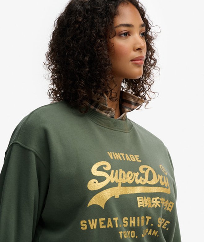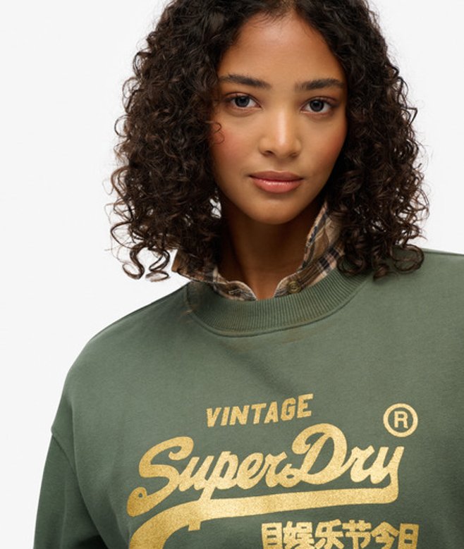 Superdry Versierde Vintage Logo Losse Sweater Green