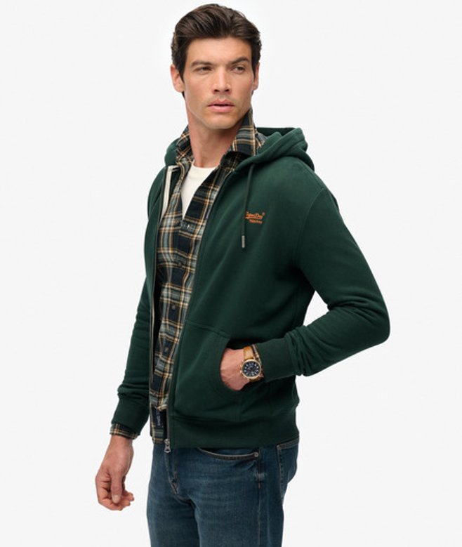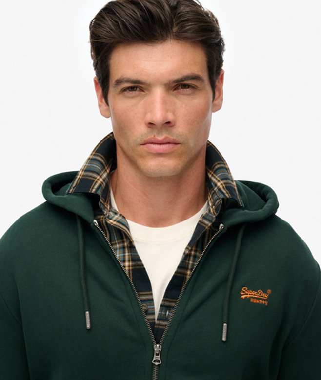Superdry Essential Logo Half Brushed Zip Hoodie Green