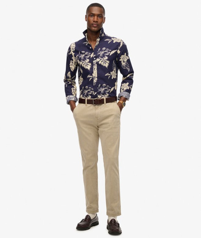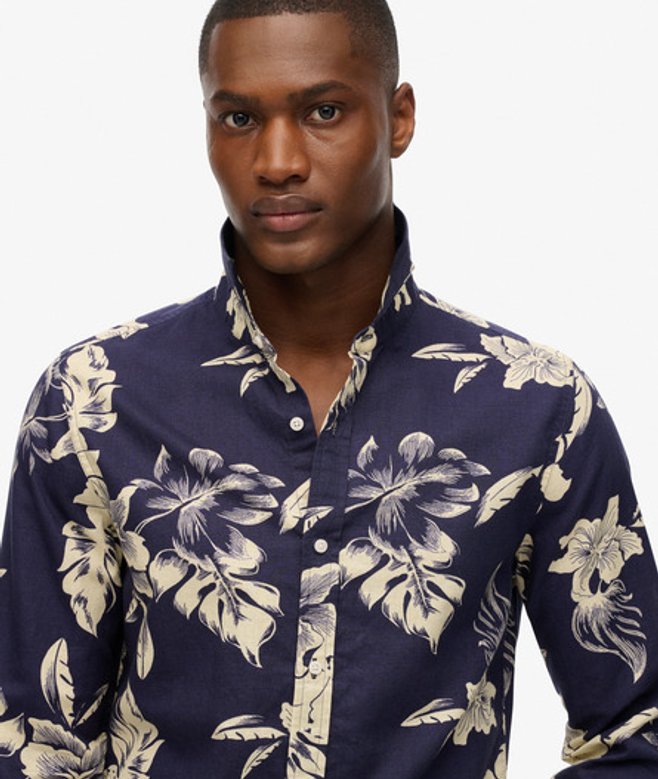 Kies je gebruikelijke maat Enkele kraag met knoopsluiting Verstelbare manchetten met knopen Kenmerkend label in de zijnaad Het Beach-overhemd met lange mouwen heeft een klassiek, populair silhouet met een moderne twist.