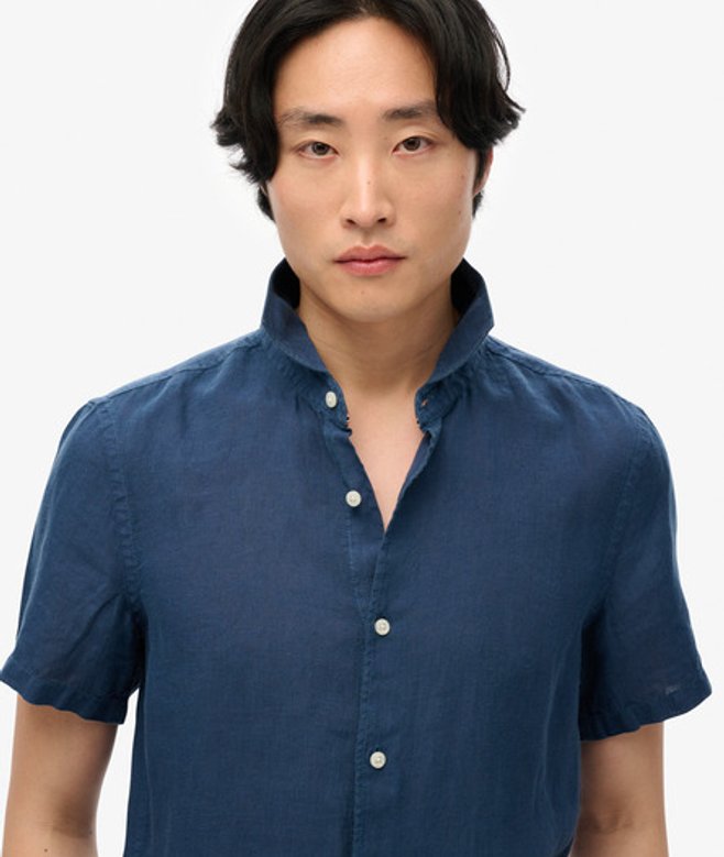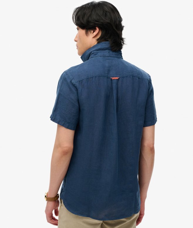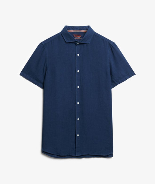 Superdry Linnen Vakantie-overhemd met Korte Mouwen Blauw
