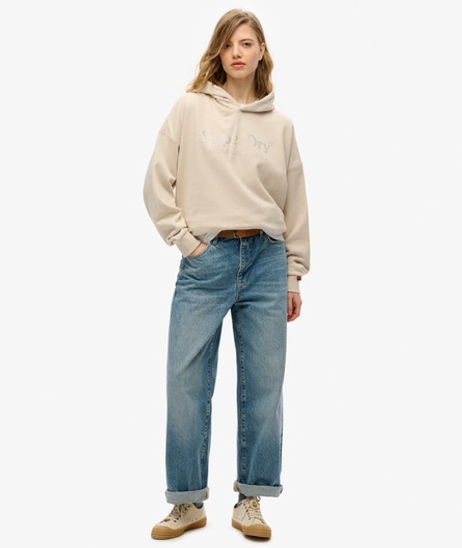Superdry Venue Metallic Hoodie met Relaxte Pasvorm Beige