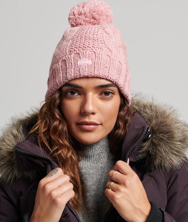 Superdry Women's Cable Knit Bobble Beanie Pink / Rose Tweed