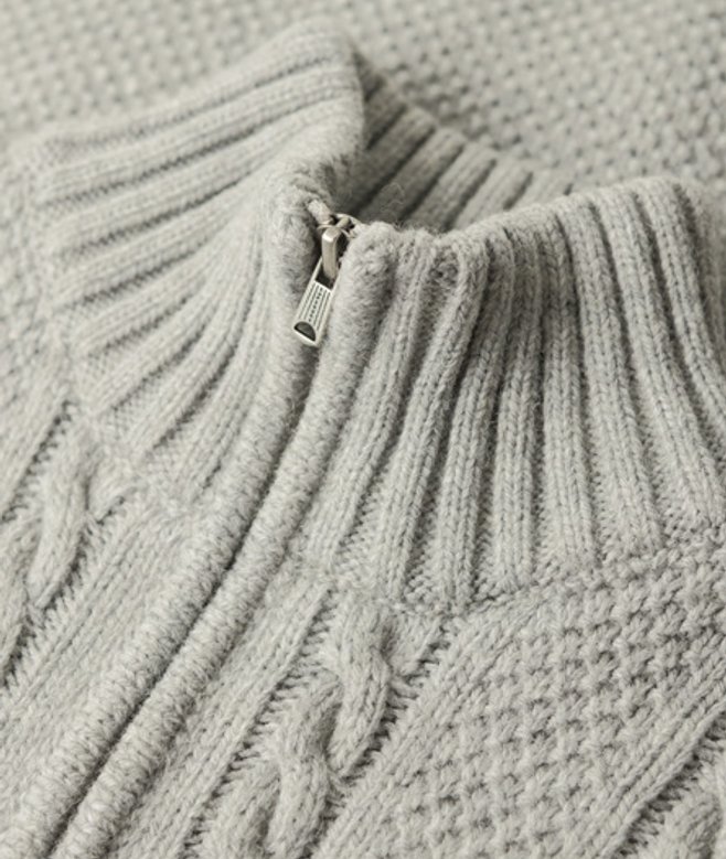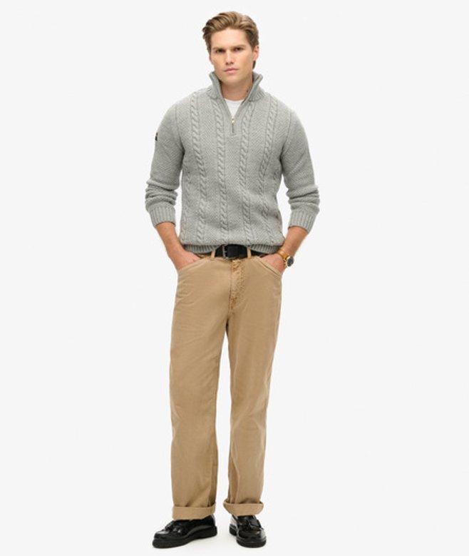 Superdry Men's Vintage Jacob Cable Knit Half Zip Jumper Light Grey / Mid Grey | ricciano UNITED KINGDOM