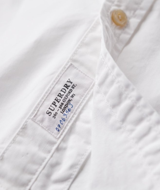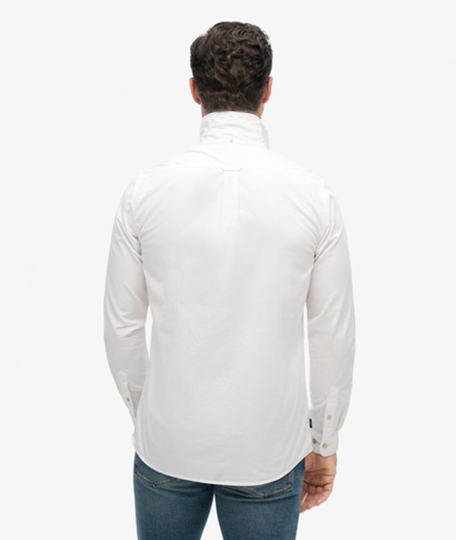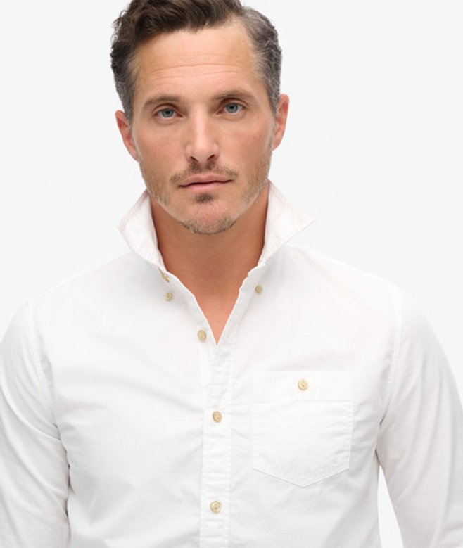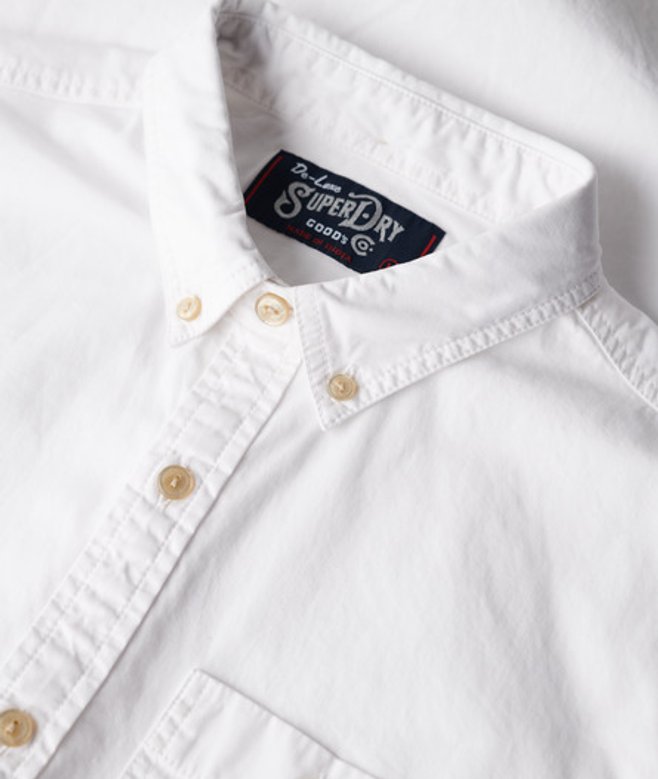 Go for your normal size Button-down style Double-button fastened collar Single chest pocket with button fastening Double-button cuffs Box pleat back design Cotton twill fabric Subtle Superdry branding on lower placket and side seam
