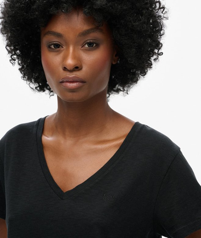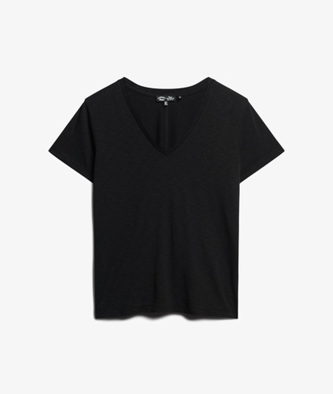 Superdry Women's Slub Embroidered V-Neck T-Shirt Black | ricciano UNITED KINGDOM