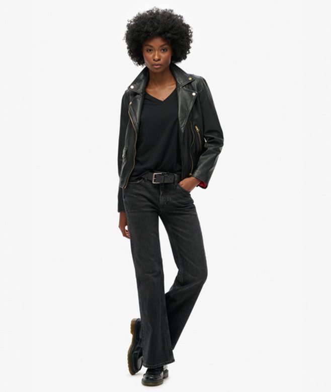 Superdry Women's Slub Embroidered V-Neck T-Shirt Black