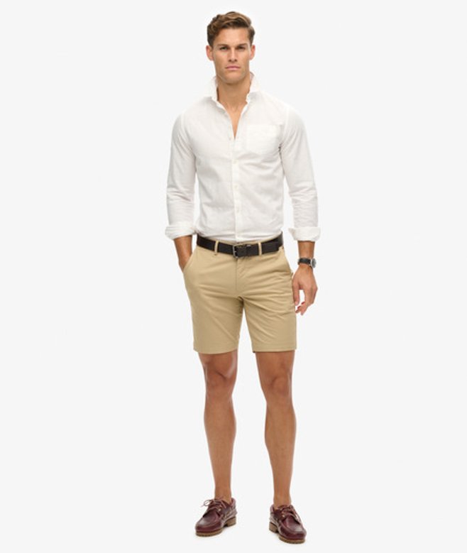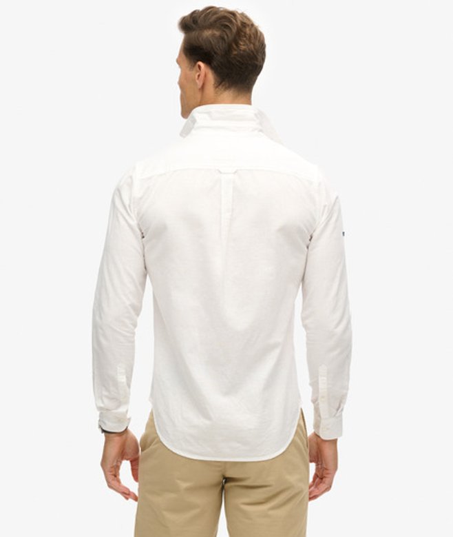 Standard collar Button main fastening Long sleeves Button up cuffs Chest pocket Organic cotton Signature Superdry tab on right sleeve Signature Superdry patch on hem Made using a blend of linen and organic cotton.