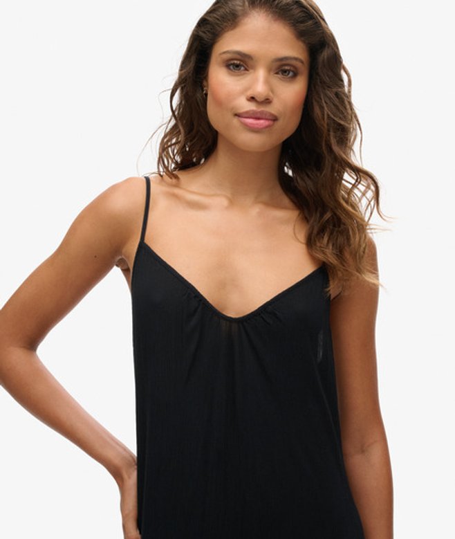 Superdry Women's Lace Detail Long Cami Dress, Black