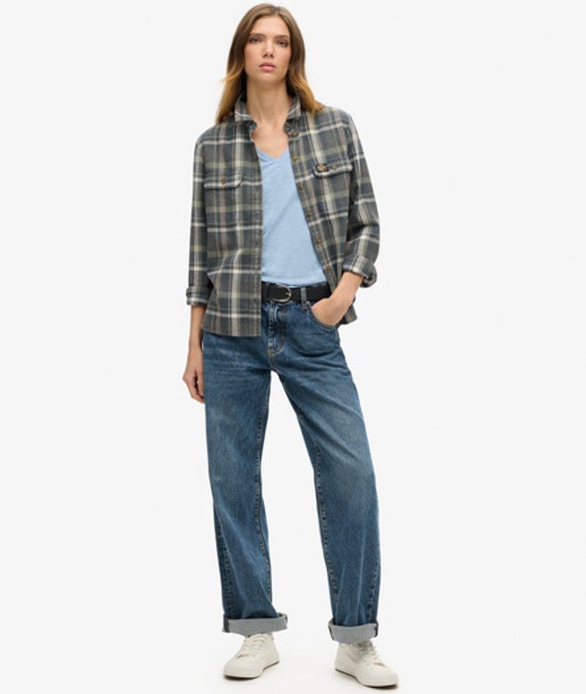 Superdry Women's Slub Embroidered V-Neck T-Shirt Blue / Forever Blue