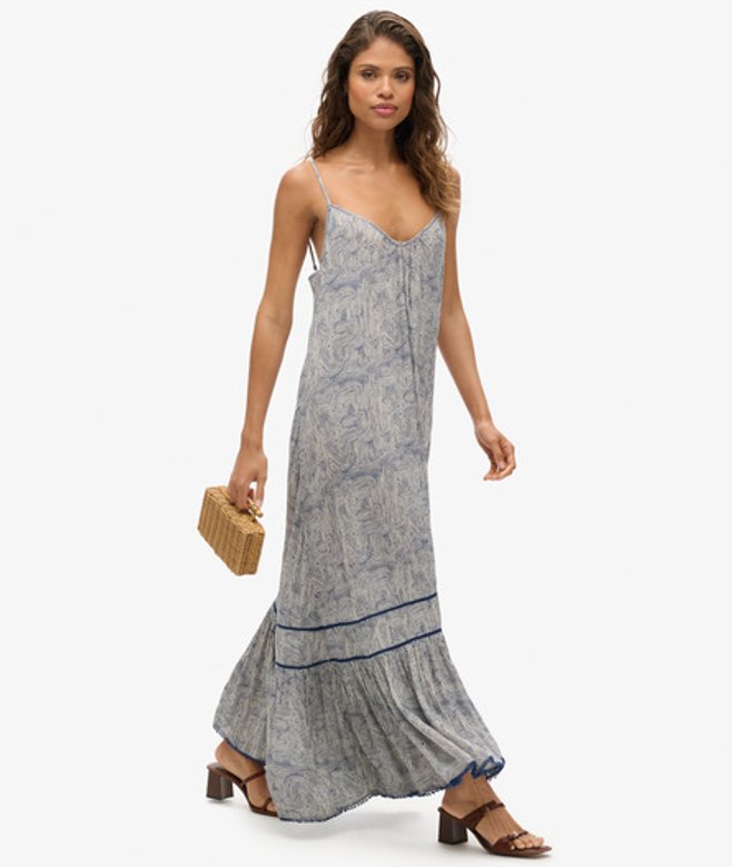 Superdry Women's Long Cami Dress Navy / Maze Print Navy