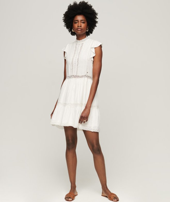 Superdry Women's Studios Lace Mix Dress White / New Chalk