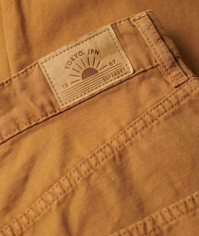 Button and zip fastening Belt loops Six pocket design Coin pocket Organic cotton Signature Superdry patch