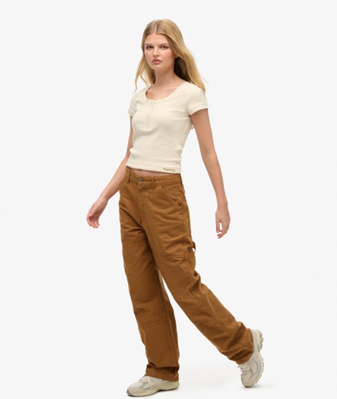 Superdry Women's Organic Cotton Vintage Wide Carpenter Pants Brown / Denim Co Tobacco Brown