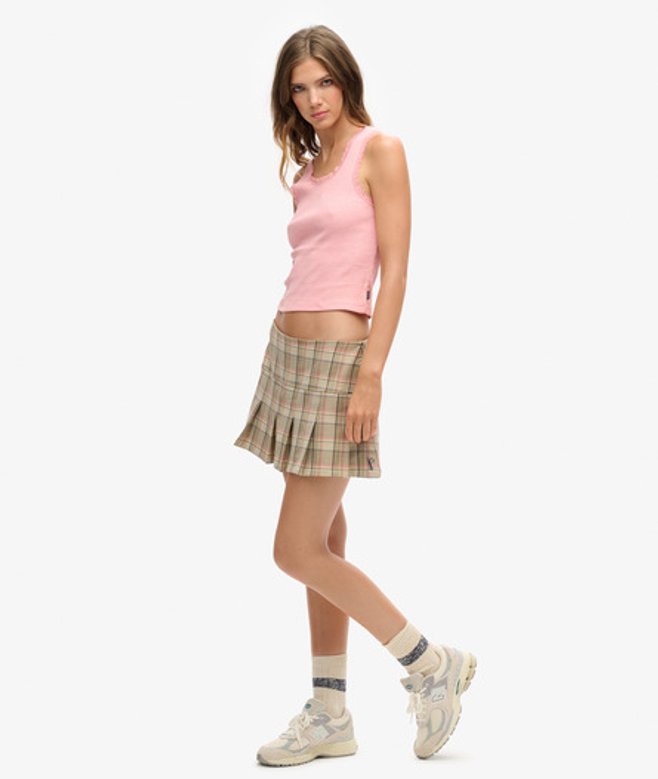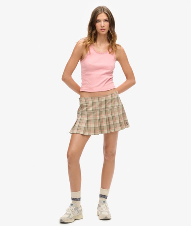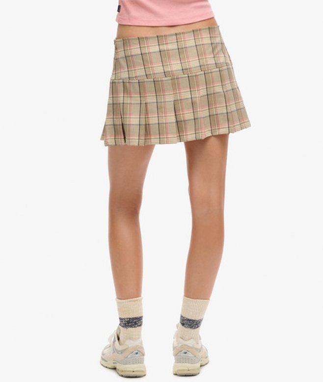 Superdry Women's Classic Check 1/2 Pleat Skirt, Cream and Brown