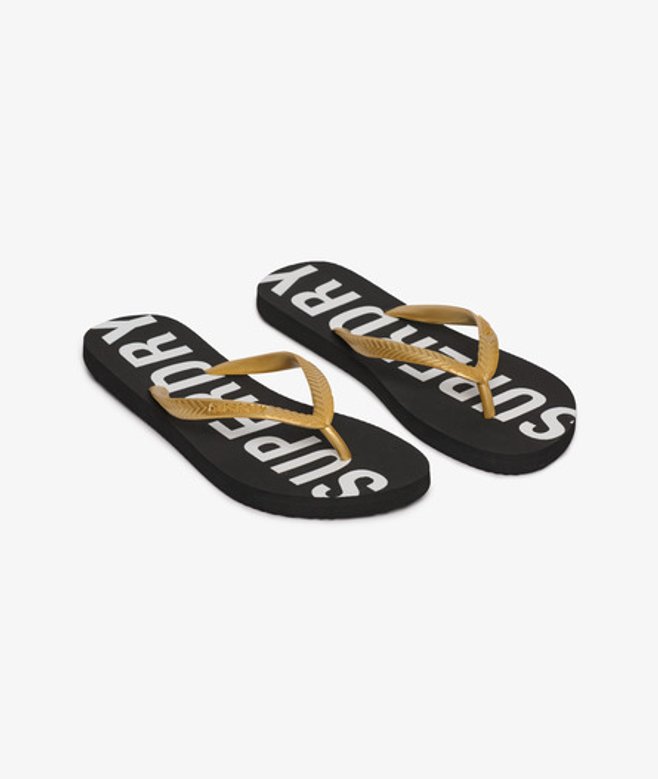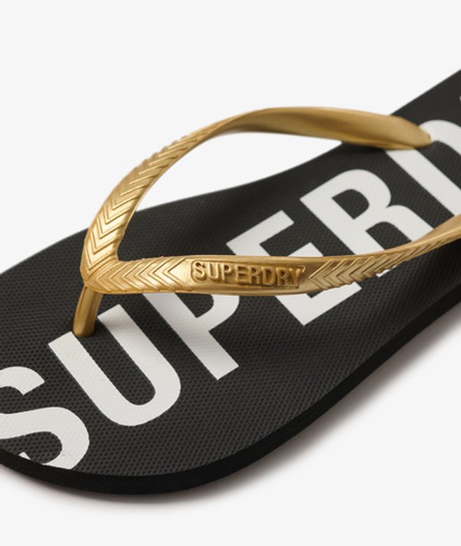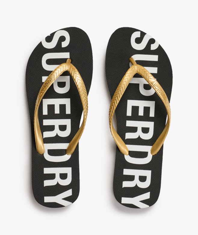 Rubber foot strap Embossed Superdry logo Branded sole S - UK 3-4, EU 36-37, US 5-6 M - UK 5-6, EU 38-39, US 7-8 L - UK 7-8, EU 40-41, US 9-10 Between the timeless black palette of these flip flops and their chic metallic vibe, enjoy a luxurious style even on the beach.