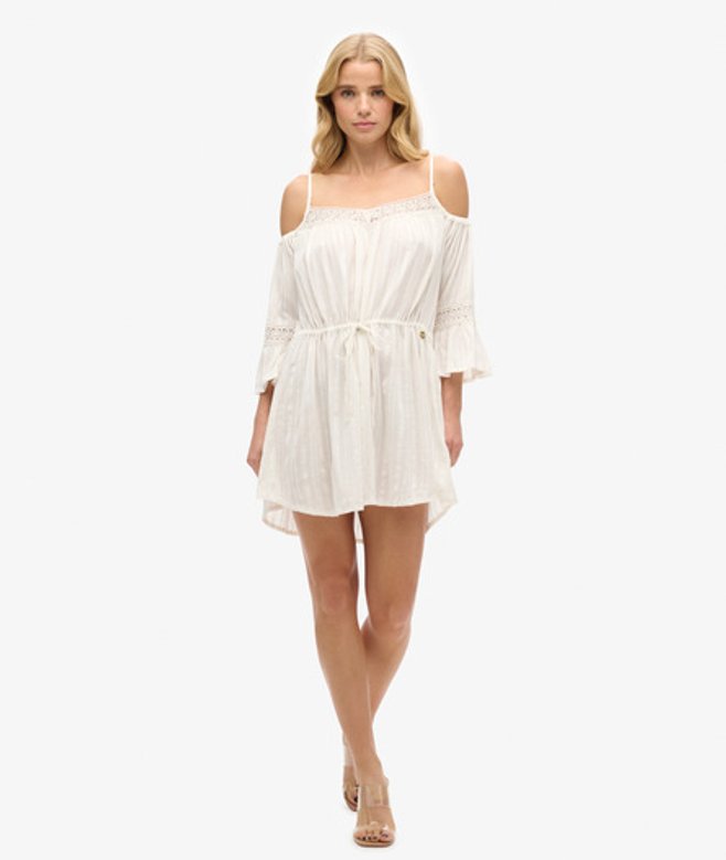 Superdry Women's Loose Fit Cold Shoulder Mini Dress, White