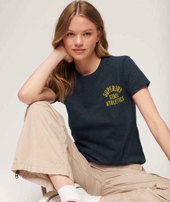 Superdry Women's Athletic Essentials Slub 90s T-shirt Blue / Blueberry Navy | ricciano UNITED KINGDOM