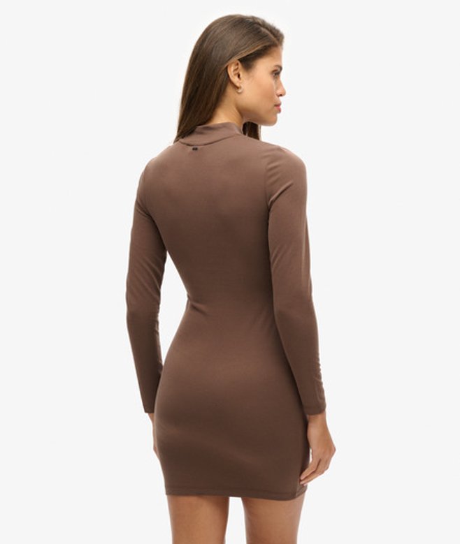 Superdry Women's High Neck Long Sleeve Jersey Mini Dress Dark Brown / Bracken Brown | ricciano UNITED KINGDOM