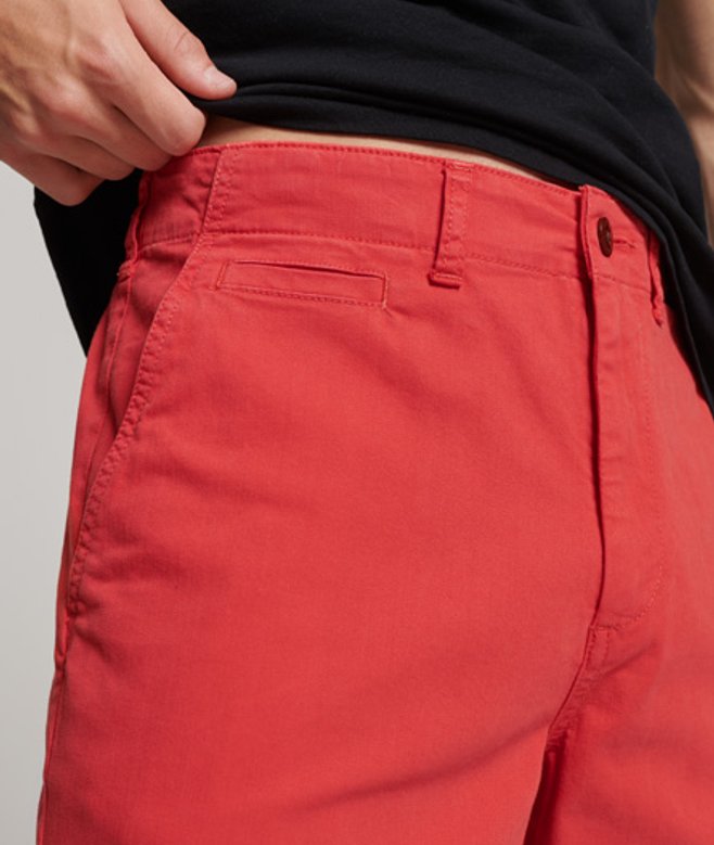 Slim fit - designed to fit closer to the body for a more tailored look Zip and button fastening Belt loops Two side pockets Coin pocket Two back button pockets Signature Superdry patch