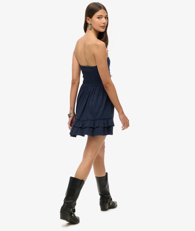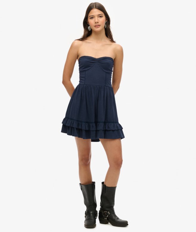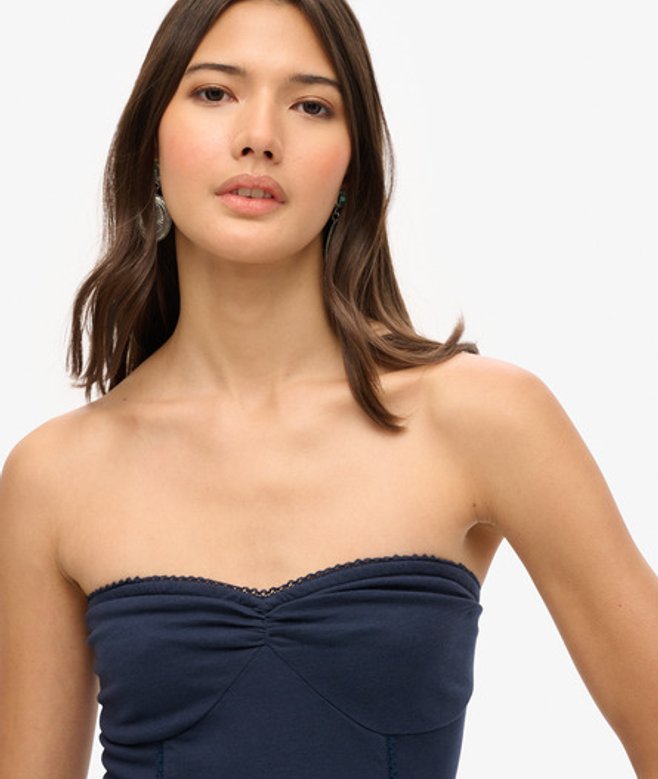 Superdry Women's Cotton 50s Lace Bandeau Mini Dress, Navy