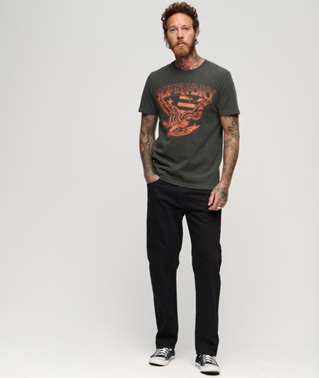 Go for your normal size Slub fabric Ribbed crew neck Short sleeves Printed Superdry graphic Signature Superdry tab on right sleeve