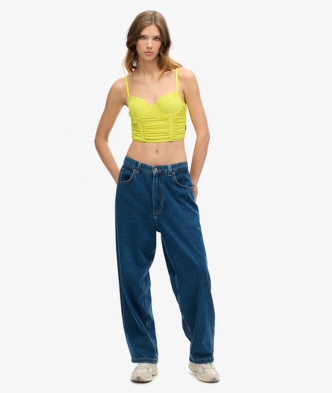 Superdry Women's Ruched Mesh Crop Corset Top Yellow / Sulphur Spring