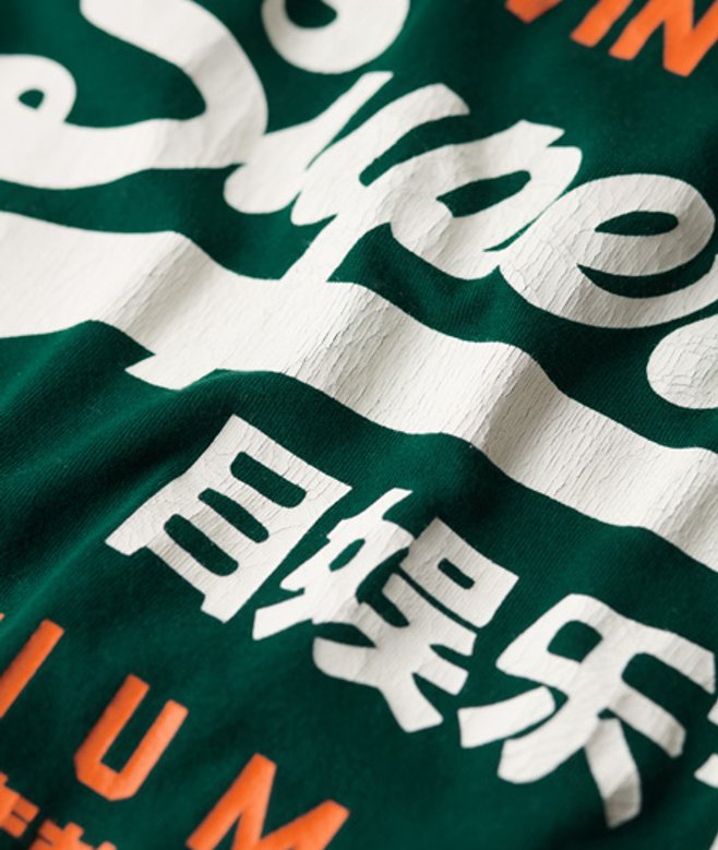Go for your normal size Ribbed crew neck collar Short sleeves Printed Superdry graphic Signature Superdry tab