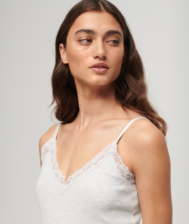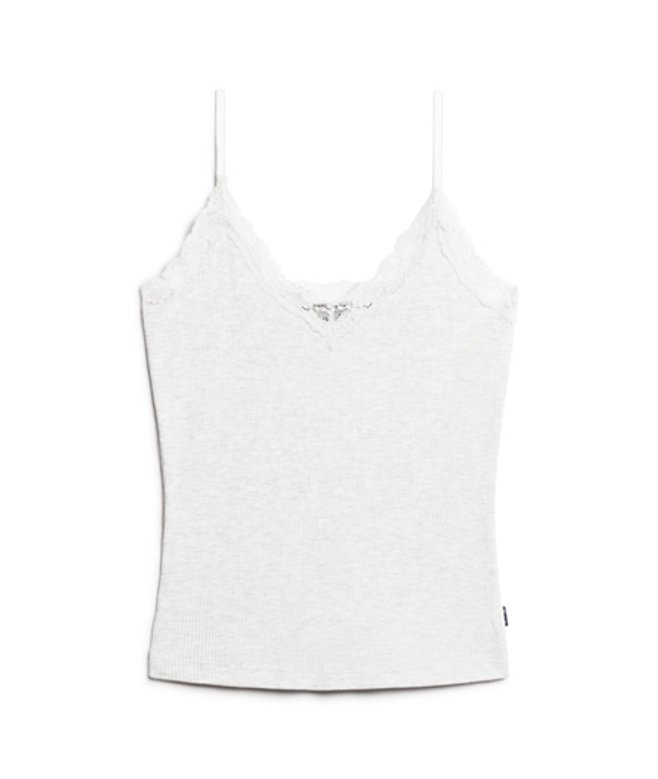Superdry Women's Organic Cotton Essential Rib Lace Cami Top Light Grey / Light Iced Grey Marl