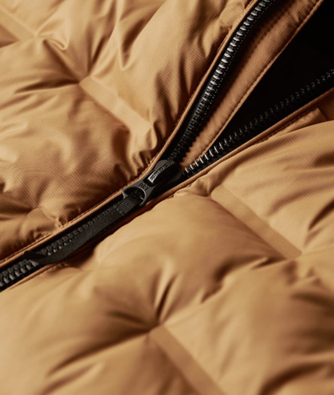 Slim fit - designed to fit closer to the body for a more tailored look Heat-sealed quilt design Elasticated hood Zip fastening Elasticated cuffs Two zipped pockets Bungee cord hem Signature badge on right sleeve