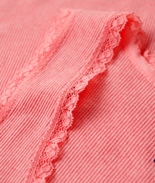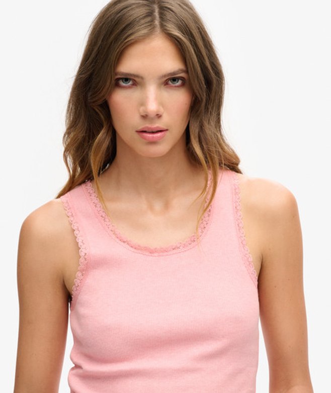 Slim fit - designed to fit closer to the body for a more tailored look Ribbed material Lace trim Sleeveless Scoop neck Superdry tab XS/S - UK 6-8, US 2-4, EU 34-36 S/M - UK 10-12, US 6-8, EU 38-40 M/L - UK 14-16, US 10-12, EU 42-44 L/XL - UK18-20, US 14-16, EU 46-48 Our Mid Pink Marl colourway gives your outfit an unrivalled softness