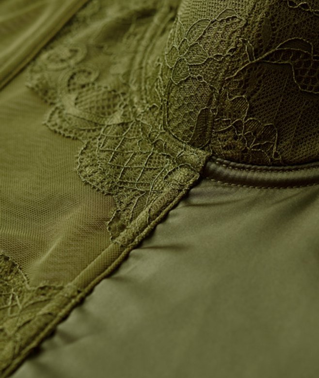 Slim fit - designed to fit closer to the body for a more tailored look Adjustable spaghetti straps Padded cups Corset style underwire and boning Mesh fabric Satin panel Lace overlays Elasticated hem Three-layer hook fastening Subtle Superdry tab