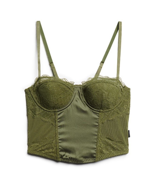 Superdry Women's Satin and Mesh Lace Corset Top Khaki / Khaki Olive