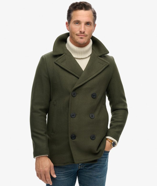 Superdry Men's The Merchant Store - Wool Blend Pea Coat Green / Dark Moss Green