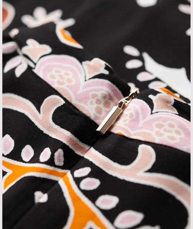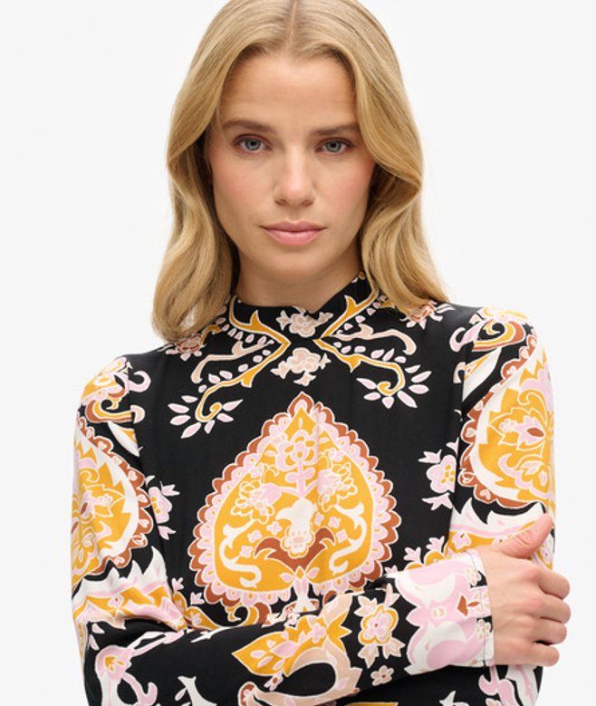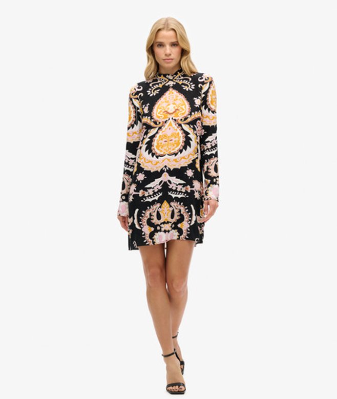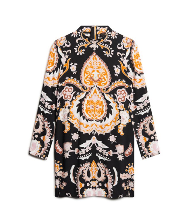 Superdry Women's Paisley Print Long Sleeve Mini Dress, Black & Yellow